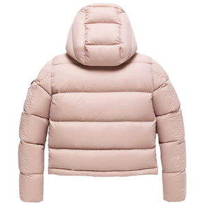 Refrigiwear short down jacket in opaque nylon with feather padding, hood with drawstring, button and zip fastening, two side pockets