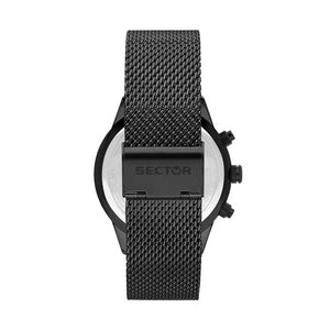 SECTOR Mod. 670 men's wristwatch with quartz movement and 45 mm silver case, back view showing multifunction features.