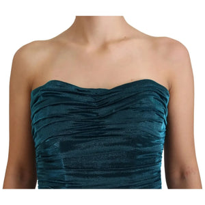Dolce & Gabbana Silk Blend Blue Satin Fitted Strapless Dress