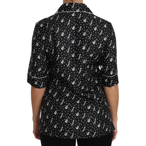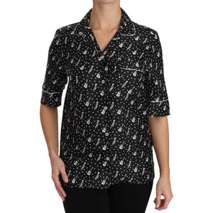 Dolce & Gabbana Black GuitarTrumpet Print Silk Shirt Top