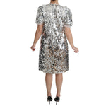 Dolce & Gabbana Silver Sequined Crystal Shift Gown Dress