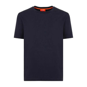 Suns, cotton, stretch, dark blue, crew-neck T-shirt with elastic sleeves and logo on left sleeve.
