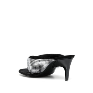 black leather rhinestone embellishment open toe branded leather insole high heel Strass embellished thong sandals Size and Fit - Heel 2,4 in / 6 cm