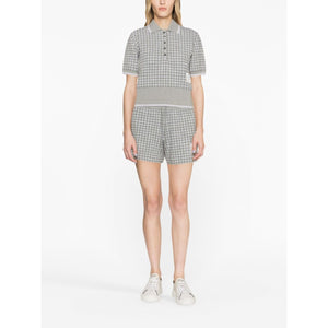 checked tweed track shorts from THOM BROWNE featuring light grey, off-white, cotton, check print, logo patch to the front, elasticated drawstring waistband and two side slit pockets. Tweed cotton shorts Size and Fit - This piece fits true to size. We recommend you get your regular size. Model is 1,75m / 5ft 8in wearing size 40 (IT)