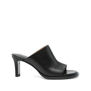black branded footbed round open toe mid heel Leather heel mules Size and Fit - Heel 3 in / 7,5 cm, Platform 0,2 in / 0,5 cm