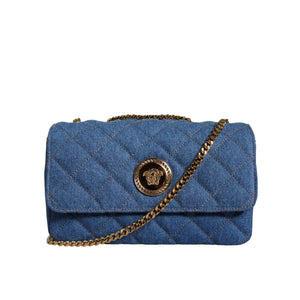 Versace Blue Quilted Denim Leather Crossbody Shoulder Bag