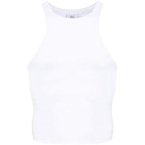 white cotton blend fine ribbed embroidered logo to the front round neck sleeveless cropped curved hem When buying this unisex item, keep in mind that it is graded in standard men's sizing. Logo cotton tank top Size and Fit - This piece fits true to size. We recommend you get your regular size. Model is 1,75m / 5ft 8in wearing size S