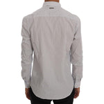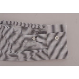 Frankie Morello White Blue Striped Casual Cotton Regular Fit Shirt