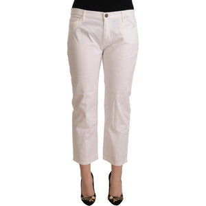 L'Autre Chose White Cotton Mid Waist Cropped Denim Jeans