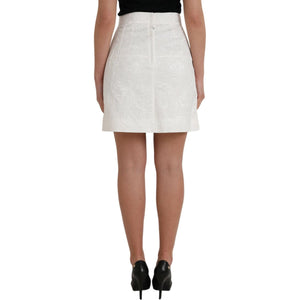 Dolce & Gabbana White Floral Brocade Embellished Mini Skirt