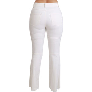 Dolce & Gabbana White Heart Flared Stretch Cotton Pants