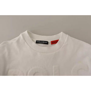 Dolce & Gabbana White Logo Embossed Cotton Sweatshirt Sweater