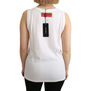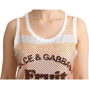 Dolce & Gabbana White Orange Crystal Sleeveless Tank Cotton Top