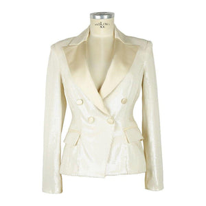 Infuse your wardrobe with the sparkling sophistication of Elisabetta Franchi’s classic jacket. Adorned with double-breasted sequins, this white sensation features a sharp pointed collar and a duo of front pockets—each detail meticulously crafted in Italy for the fashion-forward woman. Amplify your ensemble with unapologetic glamour that speaks volumes of your trendsetting style.