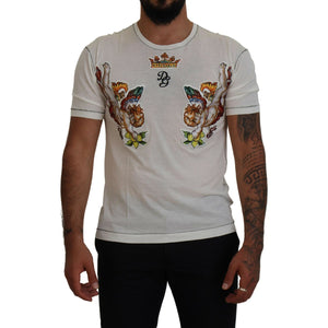 Dolce & Gabbana White Printed Short Sleeves Men T-shirt