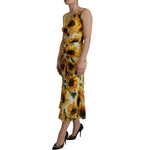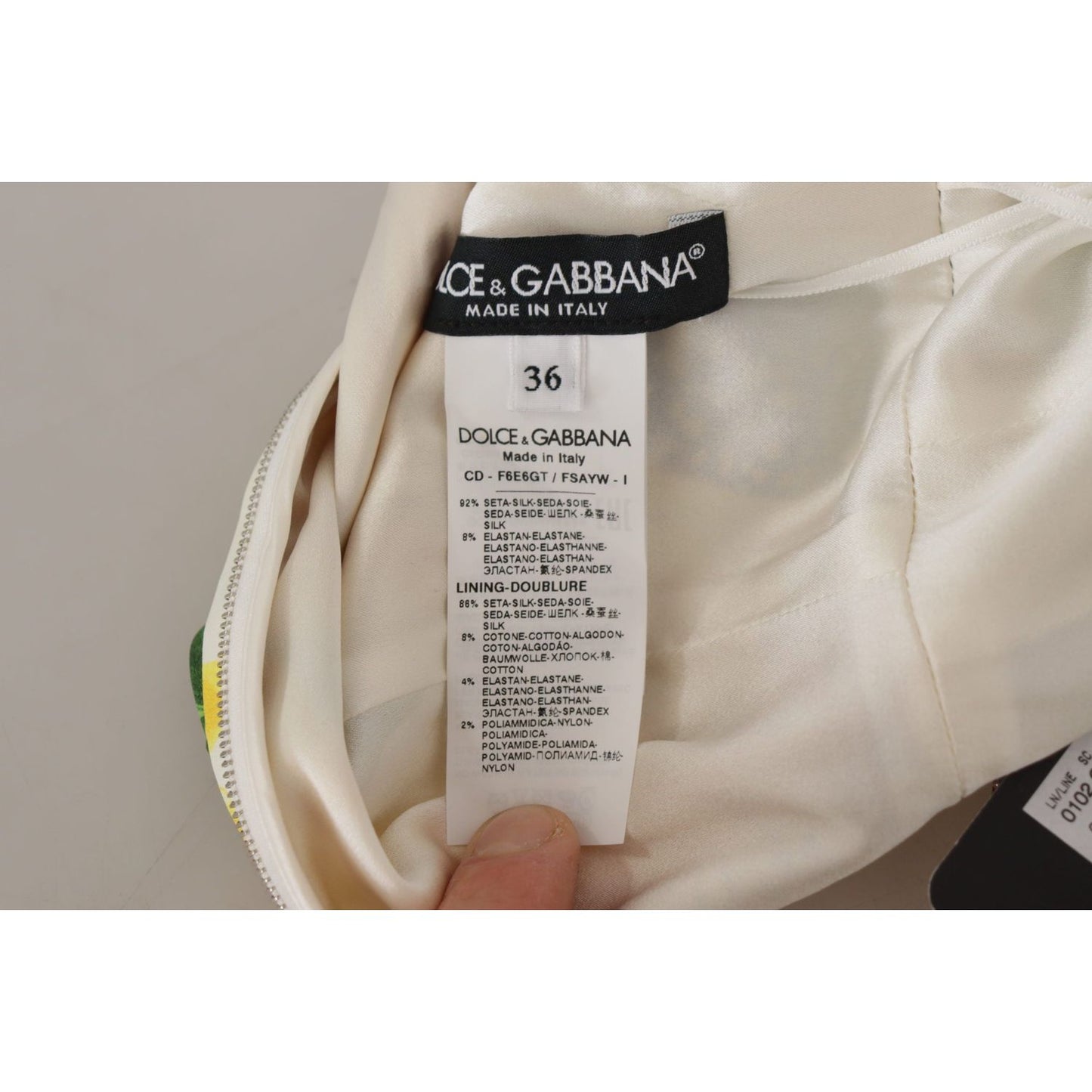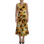 Dolce & Gabbana White Sunflower Print Sheath Midi Silk